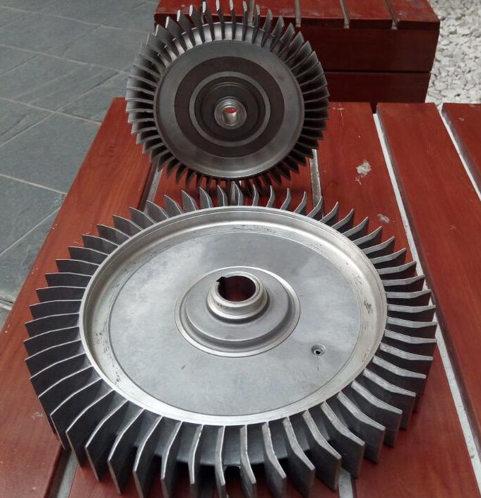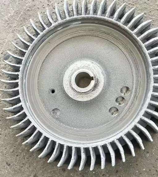 上图为损坏之后的叶轮图片,铝合金材质不易焊接,即使修复好,它的平衡度也被破坏了,会影响到使用寿命。